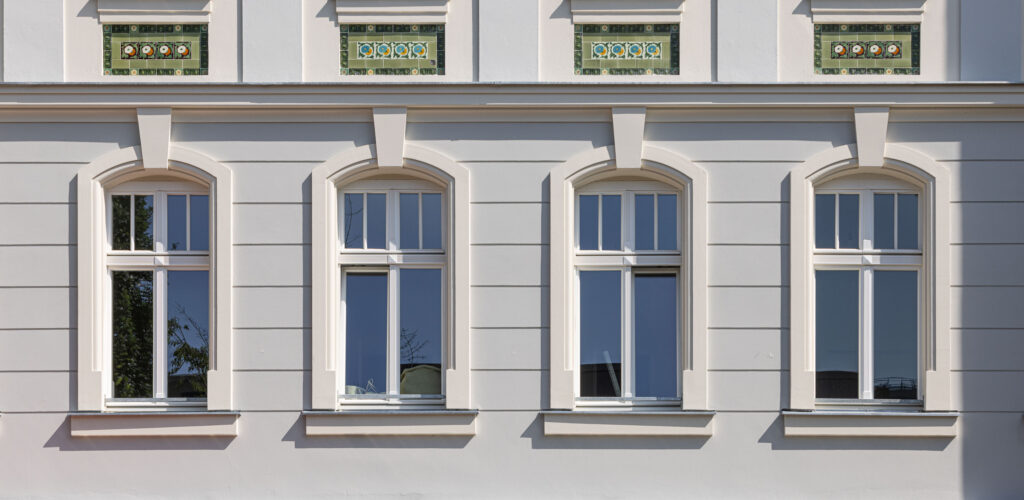 Die K. Rogge Spezialbau GmbH verantwortete bei diesem Projekt die kompletten Putz– und Stuckarbeiten an den Straßen- und Hoffassaden. Zu den herausragenden Leistungen zählte die fachgerechte Restaurierung und Rekonstruktion von rund 1.560 m² historischen Putz- und Stuckflächen. Mit meisterhafter Handwerkskunst und viel Liebe zum Detail wurden zudem etwa 860 Meter an traditionell gezogenen Stuckelementen neu hergestellt und wiederhergestellt. Dazu gehörten unter anderem prächtige Dachgesimse, Sohlbankgesimse, aufwendige Fensterumrahmungen, klassische Pilaster sowie Putztaschen und Gurtgesimse.