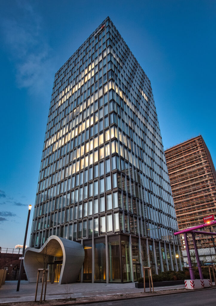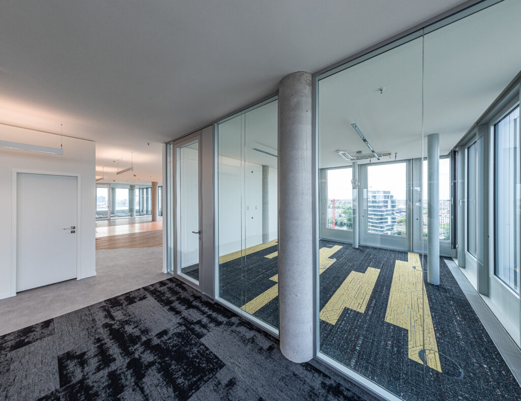 Die K. Rogge Spezialbau GmbH wurde als Generalunternehmer (KG 300 + 400) mit dem umfangreichen Innenausbau beauftragt. Das Leistungsspektrum umfasste den kompletten Mieterausbau für namhafte Unternehmen. Dabei wurden im Rahmen mehrerer Ausbaustufen nahezu alle Ebenen vom Untergeschoss bis hinauf ins 20. Obergeschoss ausgebaut und schlüsselfertig übergeben.