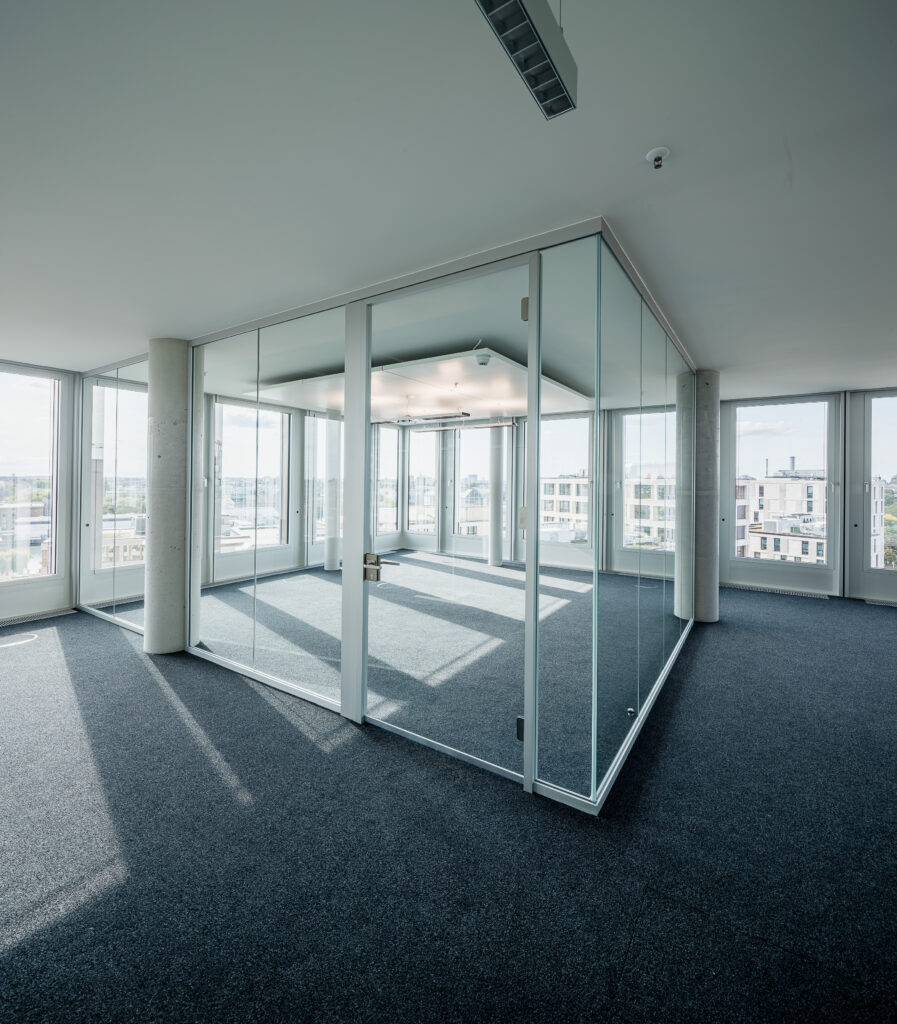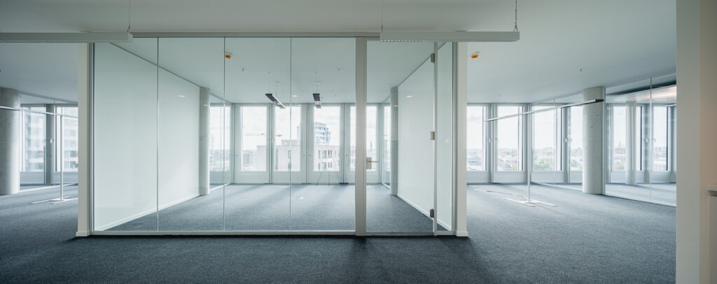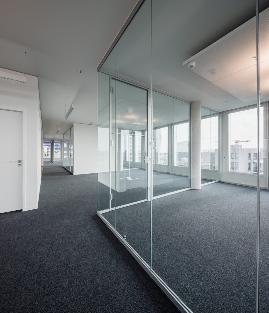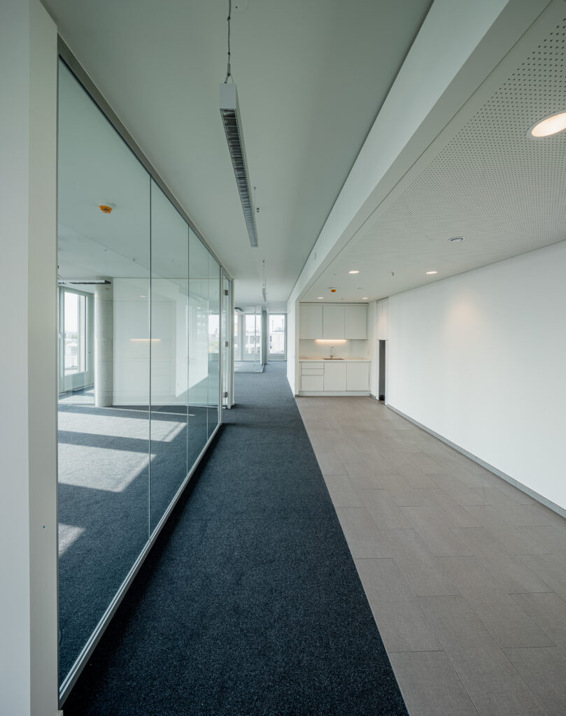 Das bauliche Leistungsspektrum der K. Rogge Spezialbau GmbH deckte sämtliche Gewerke des Innenausbau ab. Neben klassischen Trockenbau- und Malerarbeiten wurden Glastrennwandsysteme, Kühldecken, maßgeschneiderte Teeküchen und hochwertige Bodenbeläge installiert sowie die gesamten Arbeiten der Haustechnik (Kälte, Elektro, Lüftung, Sprinkler und Sanitär) zur Fertigstellung übernommen.