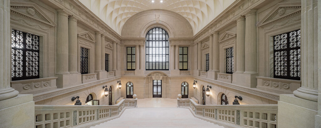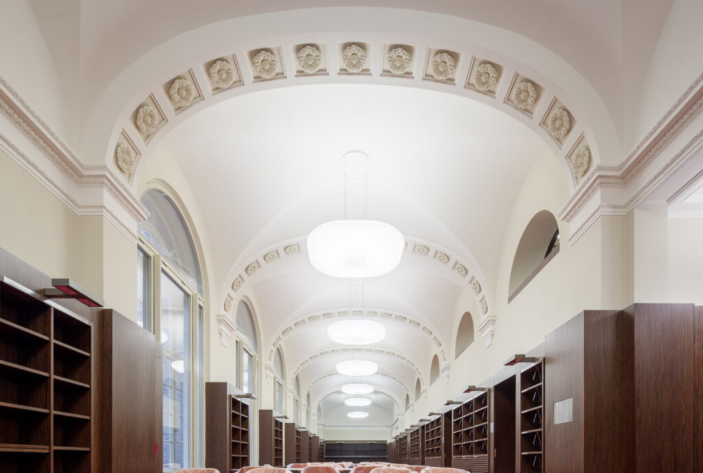 Im Rahmen der Grundinstandsetzung und Erweiterung durch einen modernen zentralen Lesesaal galt es, die historische Substanz behutsam in die Gegenwart zu überführen.