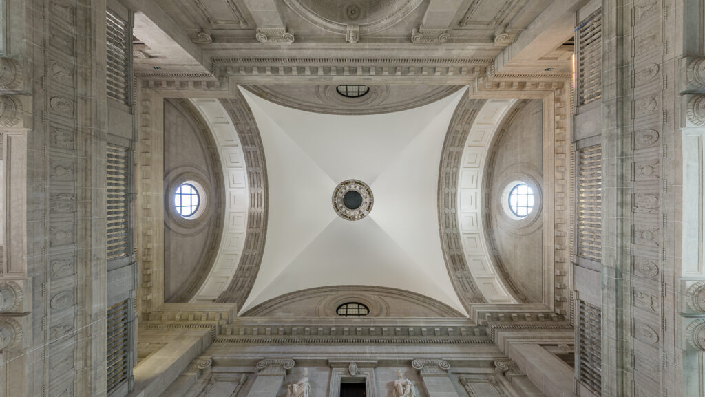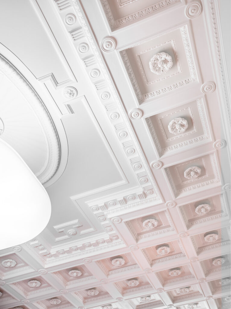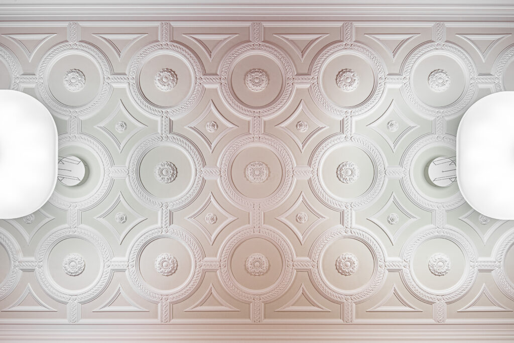 Die Leistungsspektren der K. Rogge Spezialbau GmbH umfassten weitreichende Stuck-, Rabitz– und Steinputzarbeiten über mehrere Bauabschnitte hinweg. Besondere architektonische Highlights waren die aufwendigen Restaurierungen der Vestibülkuppel, für die eigens maßgeschneiderte Lehrbögen angefertigt wurden, sowie die originalgetreue Rekonstruktion historischer Kunststeinelemente und Rosetten durch speziellen Formenbau. Für die Steinputzergänzungen wurden eigene Mörtelrezepturen entwickelt und nachgestellt.